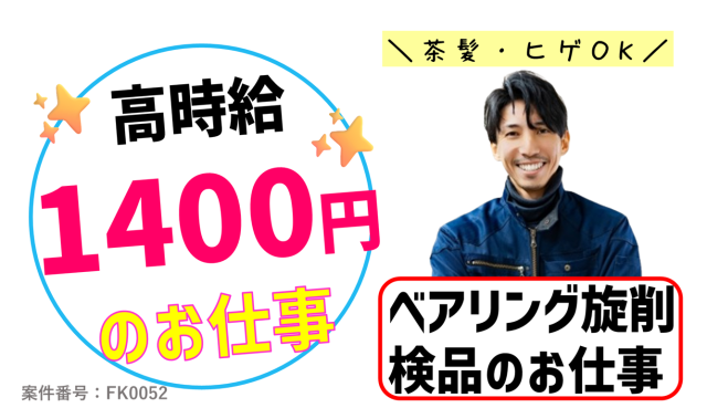 ◆高時給1400円◆20代~40代男性スタッフ活躍中!ベアリング製品加工・検品のお仕事★茶髪OK!