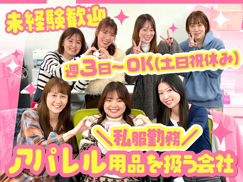 仕事内容 データ入力や伝票チェック・電話対応。 未経験者でもわかるようになるまで 優しく丁寧に教えます! 最新のトレンドに囲まれながら 楽しく働こう! ⭐未経験も安心♪  ̄V ̄ ̄ ̄ ̄ ̄ ̄ ̄ ̄ 未経験の方もイチから丁寧に教えるので 安心して働けます♪ 主婦さんや学生さん、フリーターが 多数活躍中! コツコツ・モクモク作業かな?と思う方も いるかもしれませんが 当社はむしろその逆! 仕事中も仕事外も、 どんどんコミュニケーションをとって チームワークを大切にしながら 働いています! ⭐ストレスフリーな環境!  ̄V ̄ ̄ ̄ ̄ ̄ ̄ ̄ ̄ ̄ ̄ ̄ ̄ 社長とゼロ距離で接することが できる職場です。 面倒見が良く、スタッフ想いの社長。 仕事外での交流もあり、 とにかくスタッフを可愛がってくれるんです。 はじめは緊張してしまうかもしれませんが、 堅苦しいのは嫌なんだよな… とかなりフランクに接してくれますよ! 変にかしこまることなく、 のびのび自分らしくいられる職場。 ストレスフリーな環境で 長く楽しみながら働きませんか? アパレルに特化した物流業を 行う当社ですが、 専門性の高い知識とノウハウがうちの強み! ありがたいことに、業績はかなり好調です。 今回の募集は事業拡大のための増員募集! 「一緒に働きたい!!」と思ったら どんどん採用していこうと思ってます! 経験とか知識とかそういったことは 二の次で大丈夫。 いまいるスタッフには、 全くの未経験からはじめた人も たくさんいます。 根拠がなくても良いので、 自信を持ってご応募くださいね! 当社の求人広告をご覧いただき ありがとうございました。 これを読んでくださった方が 「一緒に働いてみたい」 「経験を活かしてみたい」と 思ってくれてたら嬉しいです。 経験者の方はもちろん、 未経験の方も大歓迎です! 風通しもよく、バックアップ体制は しっかり整っています。 少しでも気になった方は、 お気軽にご応募ください!!