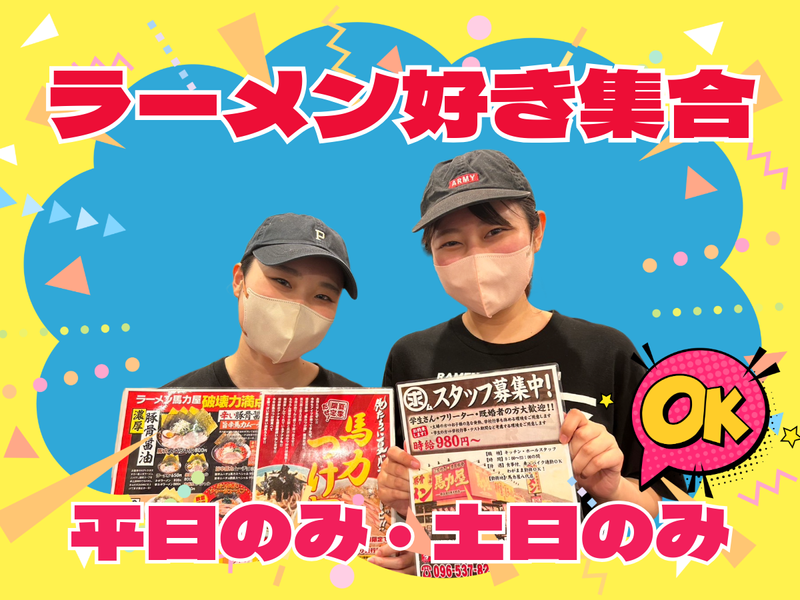 職場環境 <ヤミツキ注意!絶対にまた来たくなるぜ!> 九州で唯一無二の 最強濃厚醤油豚骨ラーメンが自慢の「馬力屋」です! スタッフ想いの店長をはじめ、 スタッフ一同ご応募お待ちしております!