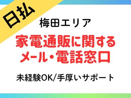 【梅田×日払】家電に関するお問合せ・入荷状況の確認|長期安定|経験不要【メール/電話/FAX】