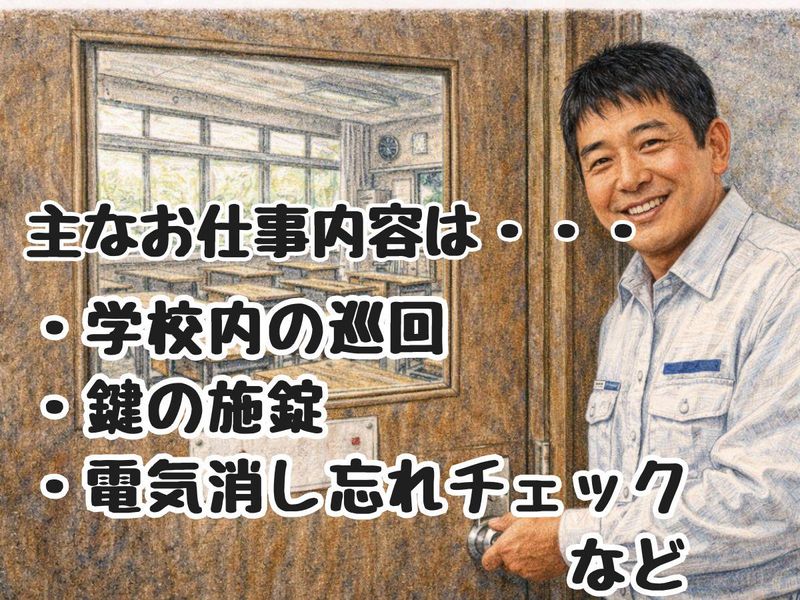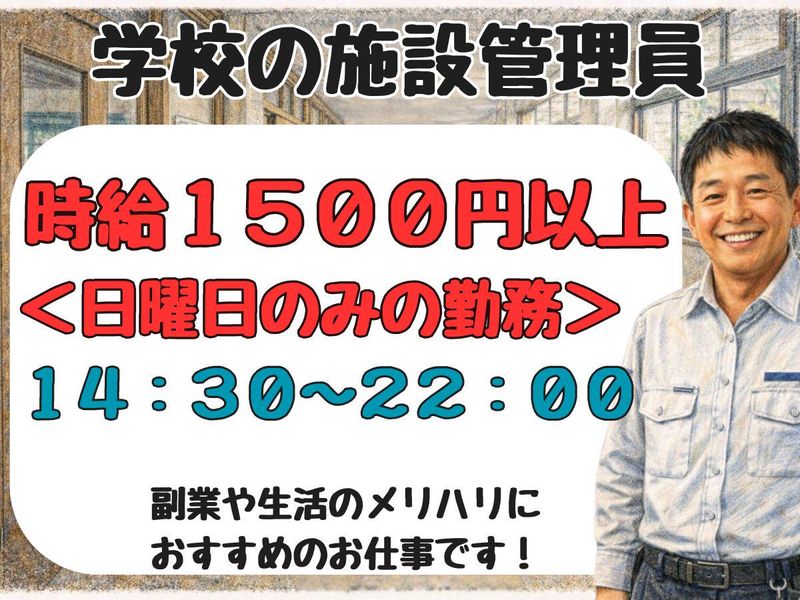 仕事内容 ■仕事内容 \力仕事なし・座り仕事あり/ 杉並区の公立中学校での「見守り・施設管理スタッフ」募集 難しい作業は一切ありません。 「巡回・確認」が中心のシンプルなお仕事です。 【具体的には】 ・校内の見回り(安全確認・巡回) ・教室や廊下の消灯チェック ・校門・校舎の施錠 ・受付・来校者対応(簡単な対応のみ) ・その他軽作業(施設管理補助) ※未経験でもすぐ慣れる簡単業務 ※体への負担少なめ/室内業務中心 ■ポイント ✔ 日曜日のみ/週1日/副業OK ✔ 未経験歓迎/資格不要/年齢不問 ✔ シニア・中高年・60代・70代活躍中 ✔ 守衛・警備・施設管理の経験活かせる ✔ 残業なし/定時退勤/長期安定 ✔ 公共施設・学校勤務で安心環境 ■こんな方におすすめ ・定年後も無理なく働きたい方 ・体に負担の少ない仕事を探している方 ・日曜日だけ働きたい方(副業・Wワーク) ・警備・守衛・施設管理経験を活かしたい方 ・安定した環境で長く働きたい方 ・地域に貢献できる仕事がしたい方 ▶ 「座り仕事+見回り中心」で体力に自信がなくてもOK