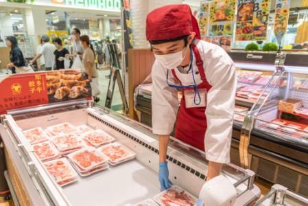 メガドンキホーテ東海通店内の精肉店のスタッフ
