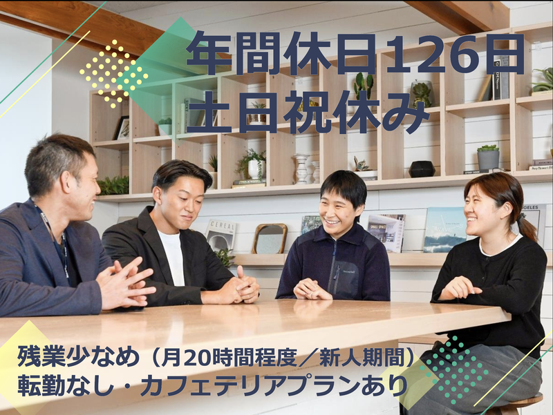 職場環境 充実した研修や、先輩社員の サポートがあるので、 未経験からスタートしても、 安心して成長していける環境です。 喫煙所:喫煙所あり(屋外)