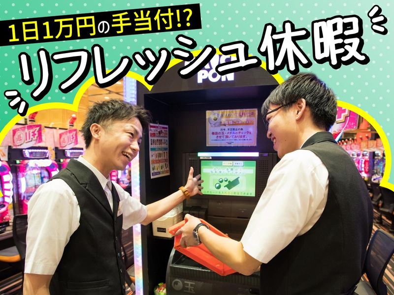 仕事内容 ══════════════════ 未経験でも安定の【正社員採用】 「打つ側」から「盛り上げる側」へ、 大好きなパチンコを仕事にしませんか? ══════════════════ <ここが魅力ポイント> ✅月給28万円〜・安定収入で生活充実✨ ✅年休111日&1日1万円の休暇手当あり✨ ✅未経験9割!パチンコ好きの仲間が多数✨ ✅賞与年2回!社員として腰を据えて働く✨ 「休みの日に気づけばホールにいる」 「新台入替の日はソワソワする…」など そんなパチンコが好きな方におすすめ! アミューズメント業界、 業務未経験の方でも歓迎します。 ユーザー目線を持つ あなただからこそできる、 魅力ある接客に携わりませんか? ▄▀▄▀▄▀▄▀▄▀▄▀▄▀▄▀▄▀ 【仕事内容】 ホール内での接客、 サポート業務をお任せします。 \\具体的には// ⏩遊技のご案内やお困りごとのサポート ⏩出玉交換や賞品カウンターでの対応 ⏩店内の簡単な清掃や見回り、点検作業 ※ゆくゆくは販促物の作成や イベント企画など幅広く携われます! ▄▀▄▀▄▀▄▀▄▀▄▀▄▀▄▀▄▀ ✅段階的に成長をバックアップ  ̄ ̄V ̄ ̄ ̄ ̄ ̄ ̄ ̄ ̄ ̄ ̄ ̄ ̄ 入社後は先輩やリーダー・ 副店長がマンツーマンでサポート。 「いきなりホールに放り出される」 なんてことは絶対にありません! ■初日: まずはリーダーや副店長と、 業務の流れやお店のルールを勉強。 ホールには出ずに知識を吸収していきます。 ■2日目: 2日目の途中からホールデビュー。 お店の熱気やお客様の動きを 肌で感じていくことから始めましょう。 ■2週目以降: 仕事のペースに慣れてきたら、 少しずつ対応できる業務を増やしていきます。 ※一歩ずつ着実に ステップアップできる環境が魅力。 将来は管理職へのチャレンジも可能など、 豊富なキャリアの選択肢をご用意しています。 ▄▀▄▀▄▀▄▀▄▀▄▀▄▀▄▀▄▀ ✅「好き」を貫ける最高の待遇  ̄ ̄V ̄ ̄ ̄ ̄ ̄ ̄ ̄ ̄ ̄ ̄ ̄ ̄ 月給28万円〜+賞与年2回。 さらに長期休暇中には、 「1日1万円の休暇手当」を別途支給! 安定収入とたっぷりの休日で、 趣味も全力投球できます。 ▄▀▄▀▄▀▄▀▄▀▄▀▄▀▄▀▄▀ ✅共通言語は「パチンコ」  ̄ ̄V ̄ ̄ ̄ ̄ ̄ ̄ ̄ ̄ ̄ ̄ 働く仲間も20代〜30代の パチンコが好きなメンバー中心です。 最新機種の話や演出の話で 盛り上がることも日常茶飯事! 同じ趣味を持つ仲間だから、 馴染みやすさはバツグンです。 ▄▀▄▀▄▀▄▀▄▀▄▀▄▀▄▀▄▀