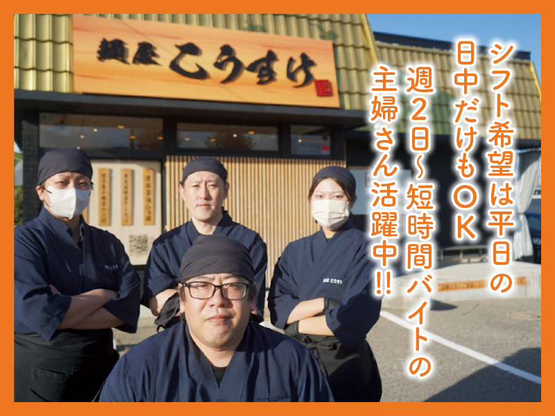 職場環境 ―――――――― 麺屋こうすけとは ―――――――― 2024年2月にオープンした『麺屋こうすけ』は 東京新宿の人気ラーメン店 「らぁ麺はやし田」 監修。 鶏油を使った特製醤油らぁ麺と 背脂がっつりの特製背脂醤油らぁ麺が一押し! 喫煙所:喫煙所あり(屋外)