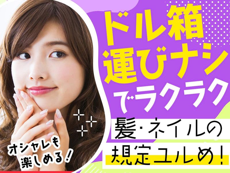 職場環境 髪型・髪色やネイルの 厳しい規定はありません。 時間固定で生活サイクルも安定、 週2日~無理なく続けられます。 何より嬉しいのが高時給! 昇格制度で抜擢されれば、 時給がさらにアップします。 ・サブリーダー時給1450円 ・リーダー時給1500円に!! 「タバコの匂いが苦手」という方でも クリーンな環境で安心して働けます!