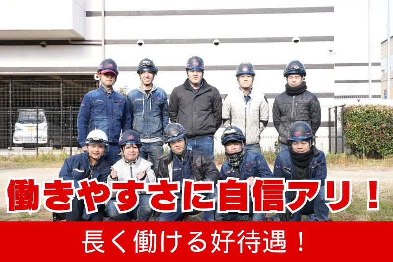 アピールポイント: <<まずはお気軽にお問合せ下さい!入社日など相談応じます>> <日本一速い、施工・解体を目指して> つくる(施工)、こわす(解体)両方を担当でき、全国から依頼が来ます。 携わる現場は商業施設や工場などの施工。 ニーズに合った施工を行う技術を持ち、 あらゆる業界に携わっています。 つくる技術はこわす技術にも活躍できるため、 解体においても多くの依頼をいただいています! 【チームワークを大切にしています】 3班制で仕事を行っています。 1班は出張、残り2班は関西圏の仕事、と分けて対応しています。 大きい案件は全員で行うことも! 全員で1つの目標に向かって取り組むことは本当に楽しく、 完成した時に全員で喜ぶあの達成感は感動ものです! 仲が良いからこそ、新人も全員でサポート。 誰が一番うまく教えられるか。そんな勝負をしたりもします! この雰囲気をつくっているのは社長の人柄。 家族ぐるみで仲が良く、なんでも相談に乗ってくれますよ。