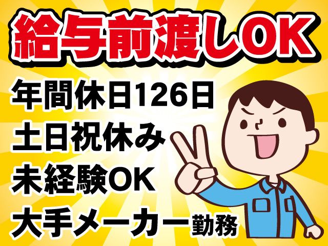 【土日祝休み&長期休暇あり】未経験OKの工場ワーク/大手メーカー/給与前渡し制度あり