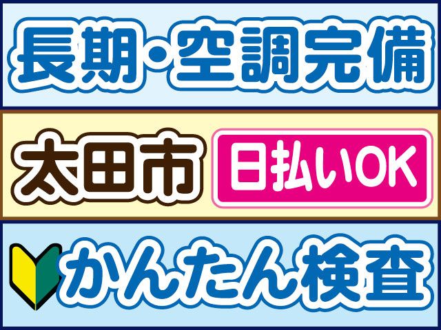 仕事内容 正社員登用あり・初心者さんも多数活躍中 かんたんでも高時給のおすすめ案件です 【検査スタッフのポイント】 〇未経験OK 〇日勤のみ 〇土日休み 〇高時給1300円スタート 〇頑張り次第で正社員登用あり 〇空調完備なので快適 〇20代30代40代の男性活躍中 〇履歴書不要 〇日払いOK(規定内) 〇交通費規定支給(規定内) 〇「マイリク定着支援」導入企業! 【検査スタッフの仕事内容】 太田市にある車部品製造工場でのお仕事 具体的には トラックのハーネス検査をお任せします。 空調完備でもくもくと作業できる環境です 職場見学(30分~1時間程度)を実施しております。 入社後のアフターフォローに自信あり 【検査スタッフの勤務について】 〇土日休みの週休2日制 〇日勤・8:30~17:30 (実働8時間) 急な発熱・体調不良・冠婚葬祭など、 突発的なお休みに柔軟に対応しております。 【こんな経験活かせます!】 下記経験者は前職活かせます。 〇製造工場勤務経験 〇検査・検品パート・アルバイト 〇軽作業パート・アルバイト 〇工場内派遣 〇主夫(婦)パート(職種不問) 前職不問で採用しております。 ブランクOK、経験の浅い方もOK コーディネーター・定着支援のWサポート体制導入 「マイリク定着支援」導入企業! アンケートで職場の様子を確認し、 コーディネーター・定着支援担当が連携してサポート。 はじめての派遣でも安心して働けるよう迅速かつ 丁寧にサポート対応いたします。 〇ご不明な点はお気軽にお問い合わせください お電話でのご応募、ご質問も受付中 株式会社ロフティー 太田支店 TEL0800-222-6888(フリーダイヤル) お仕事情報など採用ページはこちらから https://entori.jp/loftyota コーディネーター・定着支援のWサポート体制導入 「マイリク定着支援」導入企業! アンケートで職場の様子を確認し、 コーディネーター・定着支援担当が連携してサポート。 はじめての派遣でも安心して働けるよう迅速かつ 丁寧にサポート対応いたします。