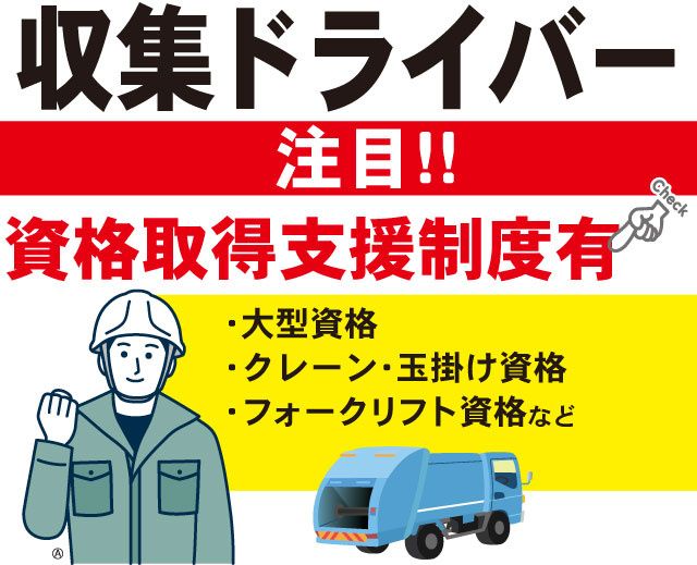 仕事内容 家庭ごみ・資源物の収集ドライバー。 日給10,000円~12,000円 【月収例/250,000円~280,000円】 ※休日出勤の場合は手当支給有。 ◎正社員 ◎未経験OK ◎安定収入 ◎長期勤務OKし ◎年齢不問 \資格取得支援制度有/ 正社員で収集ドライバーの仕事をしながら 下記の資格取得が可能です!! ・大型資格 ・クレーン ・玉掛け ・フォークリフトなど 各種資格が取れます。 【主なお仕事】 家庭ごみ・資源物の収集ドライバー。 ごみステーションの家庭ごみや 資源物の回収をする収集ドライバーのお仕事。 行政からの委託なので、安定しています。 (収集エリア) 松本市から委託された地域で 波田・梓川・安曇・奈川になります。 8:00~17:40の日勤での 収集ドライバーになります。 業界の経験がなくても研修にて しっかり教えるので未経験でも大丈夫! 年齢も問いません!! 転職希望の方や、正社員で働きたい方など 皆さんお待ちしております。 〇応募について 勤務地は松本市梓川になります。 松本市の方はもちろん、安曇野市 山形村の方も通勤圏内です。 ご不明な点は、0263-78-5525/松下まで お気軽にお電話ください。 お待ちしております。