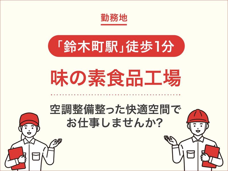 選考プロセス 応募情報を確認後、面接のご連絡をさせて頂きます。 平日8~17時までお問合せ受付可能です! 【面接地・登録地】 味の素株式会社 川崎工場 所在地:神奈川県川崎市川崎区鈴木町1-1(最寄り駅:鈴木町) 電話番号:09033431199 メールアドレス:afm.kawasakisaiyo.qx5@asv.ajinomoto.com
