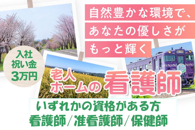 【アピールポイント】 \日勤のみの老人ホーム/ 看護師・准看護師をパートアルバイト募集♪ ◇週1日~・1日4h~OK ◇扶養内可 ◇夜勤/オンコールなし ◇入社祝い金3万円!