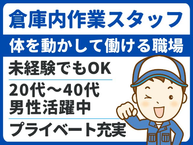 仕事内容 物流倉庫での仕分け作業員募集!! 長期安定して働けます。 <お仕事について> 物流倉庫内での主な仕事内容は 飲料商品を店舗ごとに仕分ける作業になります。 大手ディスカウントストアへ出荷する飲料商品を 仕分けてハンドリフトで移動します。 (1)ピッキング 保管されている飲料水を、 リストを見ながら集める作業 (2)仕分け 集めた飲料水を配送先ごとに分ける作業 飲料水の為、重量あり (1ケース500ml24本/2~6本で~12kg程度) 日曜日が固定お休みで、週休二日制になります。 <未経験でも安心して働けます> 倉庫作業が初めてという方でも 丁寧に指導いたしますので ご安心下さい。 未経験やブランクがある方も 経験豊富な先輩社員がいるので 疑問や質問は気軽に聞ける 環境なので安心してください! その他フォークリフトのお仕事もありますので お気軽にお聞きください。 出張面接も行うので面接時にご相談ください!