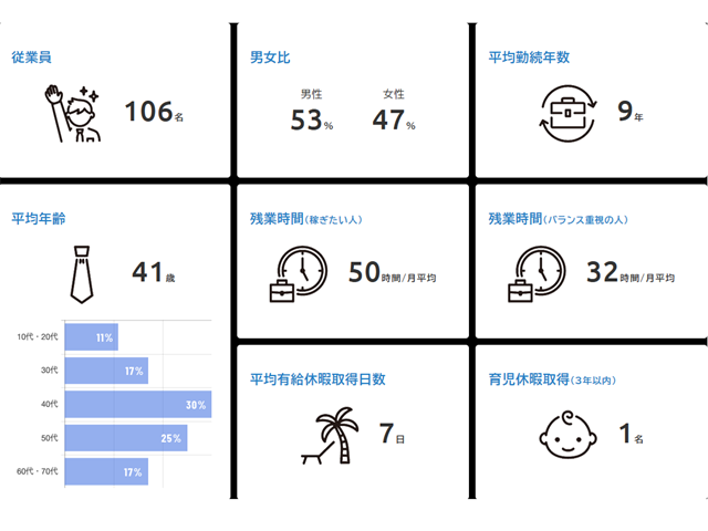 固定時間制 勤務時間 8:00~17:00 (実働8時間/休憩60分) ≪残業≫ 月30時間~繁忙期は60時間程度 ライフスタイルに合わせて相談OK! ※残業手当は全額支給します ※週に1~2回交代で定時終業日を設けています。