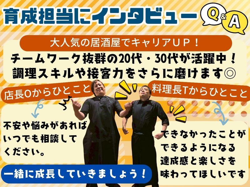 求めている人材 髪型・髪色自由、ひげ・タトゥーOKなど自由度が高いです! 自分らしくオシャレも楽しみながら働けますよ♪ 個性を尊重し、スタッフの自由な発想や自己表現を応援します✨ *未経験OK *社会人デビュー歓迎 *フリーターから正社員を目指したい方 *飲食が好き・料理を覚えたい方 *人間関係がいい職場で働きたい方 ※経験・資格は一切問いません。 【入社後学べるスキル!】 ・料理の基本である包丁の扱いから、天ぷらや海鮮の調理技術まで一から学べます。 ・メニュー開発や盛り付けなど、創意工夫を活かせる仕事です。 ・ゆくゆくは新人育成やシフト管理など、マネジメントスキルも磨けます。 ・調理技術だけでなく、チームをまとめる力やリーダーシップも身につく環境です。