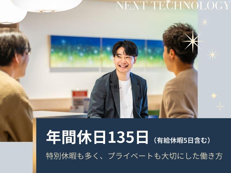 仕事内容 ー 理想の働き方が叶う場所 ー ★1. 働く場所自由 - フルリモ制度あり ★2. 還元率最大90%! 給与テーブル公開 ★3. 案件情報全開示、自由に選択可能 ★4. 残業月平均11h/年休135日/副業可 ★5. Udemy,外部講師研修スキルアップ支援◎ ※詳細は下記、【アピールポイント】へ <具体的な業務内容> 情報技術に関する専門的なスキル・知識を活用し、システム開発やITインフラの設計・構築・運用を行います。 <案件例> ■AIエージェント開発 工程:要件定義~テスト 環境:Python,TypeScript,React,Next.js,Node.js,GO,Kubernetes,Terraform,AWS ■電子コミックサービス開発 工程:設計~テスト 環境:TypeScript,React,Node.js,JavaScript,PHP,AWS ■次世代ブロックチェーンサービス開発 工程:設計~テスト 環境:GO,GCP,iOS,Android,Swift *今後は受託開発や自社サービスにも力を入れていきます! …………………………………………… \ アピールポイント / 【1】全国どこからでも好きな場所で働ける 「子育てと両立」「慣れ親しんだ土地で」 など生活に合わせて選べます。 <リモート割> フルリモート52%,ハイブリッド18% ,フル出社30% 【2】全員が年収UPを実現しました! 経験やスキルに合った正当な評価で 年収UPに繋がってます。 単価連動性で給与テーブルを公開し、 最大還元率は90%!透明性も◎ 【3】案件情報全開示、自由に選択可能 単価/内容/期間など、案件情報は全て開示。 「興味のある案件へ」「スキルに合わせて」 などの希望に合わせ自由に選択ができます! 【4】残業月平均11h/年休135日/副業可 働きやすさバツグン! 社員の声を基に福利厚生を日々アップデート。 ★服装自由 ★フリードリンク完備(生ビールも!) ★全てのオフィスが駅直結 【5】スキルアップ・サポート充実 動画学習(Udemy) や、外部講師を招いたAI勉強会など、社内の声から実現した制度も!常に学べる環境を用意。 経験が少ない技術領域に挑戦する際には、経験豊富な先輩エンジニアとともに案件に入ることも可能です! …………………………………………… 当社の魅力についてもっと知りたい方は、 下記URLをチェック! ◆note(社員インタビューあり) https://note.com/nexttech/ ◆Qiita https://qiita.com/organizations/nexttechnology/profile ◆採用HP https://nexttechnology.jp/recruit/ ◆広報 https://x.com/NextTechPR ◆社長SNS https://x.com/wadagaku