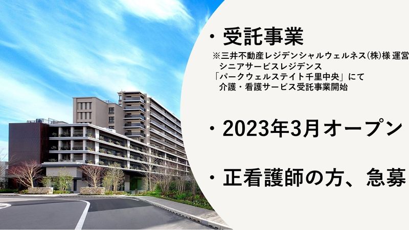 \Daigasグループで働こう/ 当社は、大阪・奈良・兵庫を中心に介護付有料老人ホームの運営、グループホームの運営、デイサービス・訪問介護等の在宅介護サービス事業、介護・看護・サービス関連の受託事業を行っています。 大阪ガスのグループ会社の一員として、安定した事業基盤でご勤務いただけます〇 アクティビティについて詳しくはブログ「アクティブライフ日々是好日」をチェック! https://www.activelife.co.jp/blog/ 定員 2 名 必須スキル・経験 正看護師をお持ちの方 歓迎スキル・経験 - 求める人物像 2026年3月ごろ入職できる方募集! 必要資格・ライセンス 正看護師 待遇 ・昇給(年1回) ・交通費全額支給 ・年末年始手当 ・有給休暇 ・社会保険完備(勤務条件による) ・健康保険(大阪ガス健康保険組合) ・資格取得支援制度 →以下の3条件を全て満たした場合支給 1)週 20 時間以上勤務 2)当社で雇用保険に加入 3)今後も当社で就業見込み ・社員登用 ・育児・介護休業制度(規定あり) ・福利厚生倶楽部(リロクラブ)加入 ・Daigasグループの福利厚生等あり ・Daigasグループ団体保険 ・Daigasグループの各種施設利用 ・職場積立NISA ・住宅提携ローン ・インフルエンザ予防接種 ・感染症に伴う出勤停止時の支援金 ・契約期間の定めあり(毎年10月1日付け条件付きで更新あり) ※勤務態度・双方の合意による。 ・仕事の変更範囲:介護サービス業務全般及び、これに付随する・関連する業務 ・転勤原則なし *受動喫煙対策について:屋外喫煙所あり その他要件 【応募後の流れ】 応募→面接1回(対面/履歴書[写貼]持参)→内定・入社 *面接日、入社日はご相談に応じます。 *最終面接から最短1週間で勤務可能 募集拠点 パークウェルステイト千里中央 大阪府豊中市北緑丘1丁目7-5