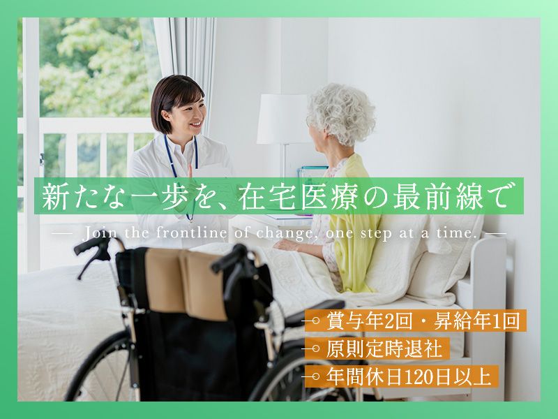 アピールポイント 〇「週休3日」で人生をもっと楽しく! ・・・・・・・・・・・・・・・・・・・・・・・・・・・・・・・ 「趣味を極めたい」「副業に挑戦したい」 「家族との時間を1分でも増やしたい」 そんな声に応えて、週休3日制(週32h勤務)を導入。 ① 週5日勤務(しっかり稼ぐ通常正社員) ② 週4日勤務(プライベート重視の週休3日) あなたの人生の優先順位に合わせて選択OKです。 〇チーム医療で「感謝」が見える ・・・・・・・・・・・・・・・・・・・・・・・・・・・・・・・ 外来のスピード感に追われるのではなく、 多職種と連携しながらじっくり患者さまに向き合う。 「いつもありがとう」の言葉が、 あなたの専門性を再確認させてくれます。 〇未経験でも安心のバックアップ ・・・・・・・・・・・・・・・・・・・・・・・・・・・・・・・ 在宅が初めての方も、まずは同行研修から。 「一人で不安」な時間は作らせません。 充実のサポート体制で、 着実なキャリアアップを応援します。 必要資格・経験