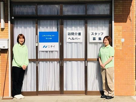 【Point オススメポイント】 「資格を取ったばかりなんだけど…」「介護職員として働くのは初めてだから少し不安…」「ブランクがあるんだけど介護職の復帰大丈夫かしら…」「子育て中の主婦・主夫のパートのヘルパーの方」なども安心して働き始めることができます! 介護福祉士を持っているベテラン介護スタッフが丁寧に教えます。スキルアップに向けて様々な研修制度が整っています♪ 若いスタッフが揃ってとっても明るい事業所です! 採用予定人数に達し次第締め切りとさせて頂きます。 【Message 採用担当者より】 【介護未経験の若者から、子育て中の主婦、中高年、シニア世代まで、幅広く活躍できます!中途・転職者歓迎!!】 みなさんの不安や疑問も、ニチイなら大丈夫!ニチイの特長ご紹介します。 [1]全国に活躍の場があります! ニチイには全国に介護拠点があります。だから今お住まいの近くでのお仕事探しはもちろん、引越先でもニチイで働く方が大勢います。 [2]フルタイムはもちろん、短時間シフトでの勤務などさまざまな働き方が選べます。ご家庭の都合に合わせた働き方ができます。主夫・主婦パート活躍中。様々なシフトバリエーションがあり、週1回、または短時間でも働けるサービスもありますのでご相談ください。 ハローワークの紹介状をお持ちの方は面接時にご持参ください。