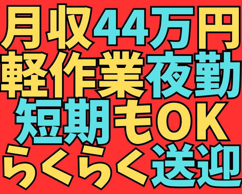 仕事内容 < 特別時給でガッツリ!月収44万円以上 > #未経験でもスグに活躍!カンタン作業 #お財布のピンチも安心!週払いあり/規定 #接客なし!モクモク作業が得意な方に! -・-・-・-・-・-・-・-・-・-・-・-・-・ ご希望により残業の有無も選べます! < 仕事内容 > とっても簡単な倉庫内での軽作業スタッフ。 商品のピッキング・仕分けなどの 発送準備をお任せします。 リストにある商品を倉庫内から集めて 送り先ごとに仕分けるだけなので簡単! 重いものは複数人で運びます。 派遣デビューにもお勧めです! < 扱うもの > 通販・ネットショップで購入された 食品や衣類、おもちゃなどの 様々な商品を扱います。 =========== スタッフさんの声 =========== 未経験で不安…と思っていましたが、 周りの方がサポートしてくれるので 安心して続けられています! シングルマザーでも稼げる仕事がしたい! と思ってこの仕事を始めました。 初めは短期のつもりだったんですが、 雰囲気も良く働きやすいので長期で 続けています!