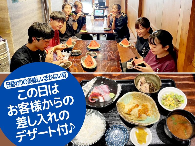仕事内容 \明石駅チカ*魚ん棚内/ 海鮮居酒屋 うお左衛門 夕方・土日祝勤務大歓迎! 学校と両立する大学生や 高校生のアルバイトstaffが活躍中! ☆土日は時給100円UP! ☆美味しいまかないの補助有 ☆ピアス・染髪可、ネイル相談OK! ☆シフト融通OKなど…メリットいっぱい★ 【お仕事内容】 ホールでの接客・調理補助をお任せします。 【具体的には】 ・タッチパネル注文なので お料理や飲み物の提供がメイン ・席へのご案内やテーブルの片付け ・ドリンク作りや簡単な盛付など調理は できることから始めます♪ ★働きやすいお店です★ 「家事と両立したい」 「がっつりレギュラー勤務」 「学校とバイトを両立したい」など あなたの希望に合わせてお仕事できる環境♪ 学校や授業が始まってからのシフト相談もOK 店長を含めstaff全員が気さくで話しやすいstaffばかりです ★近隣に系列店舗も有★ 明石焼き「たこ左衛門」 寿司屋 「すし左衛門」 カジュアル居酒屋「お魚スタンドうおざえもん」 3店舗ともスグ近くです♪
