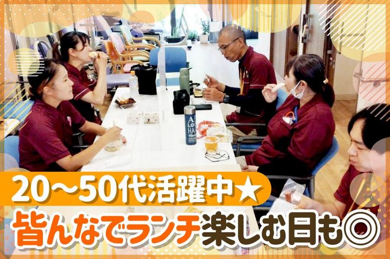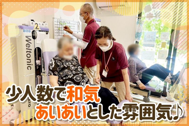 職場環境 <介護予防を目的とした、スポーツクラブのようなデイサービス> 20~60代の男女スタッフが10名在籍。子育て世代も活躍中! 福祉業界経験者からセカンドキャリアとして未経験で始められた方まで 明るく気さくなスタッフが揃っており、 新人さんも馴染みやすいです♪