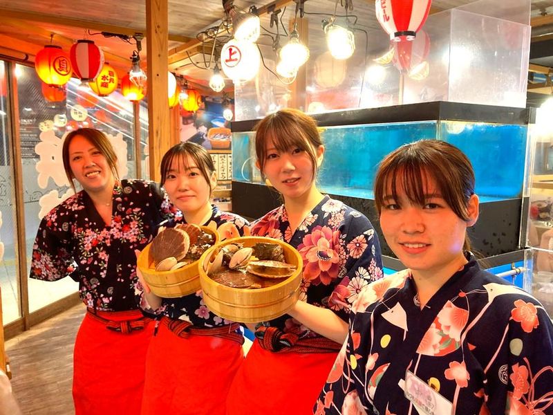 仕事内容 磯丸水産新市街店にて、スタッフを大募集! オーダー取りやカンタンな調理補助など 少しずつ丁寧に教えていきます! 一緒にお店を盛り上げていきましょう! ●ホール● 席へのご案内、配膳、会計、片付けなど、 ホール業務全般です。 注文用のタッチパネルも導入するので 働きやすい環境ですよ! ●キッチン● 最初は簡単な焼き物や盛り付けから。 慣れてきて希望があれば 一品料理や魚のさばき方など イチから教えます! 魚をさばく特技を習得しませんか! 【◇◆磯丸水産のオススメポイント◆◇】 週0~OK!空いた時間に働けます! テスト期間はしっかり休めます♪ 面接時の履歴書は不要♪ 出来るだけ多くの方とお会いして、 採用できればと考えております! 友達を誘ってもOKです♪