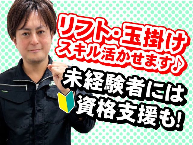 リフト・玉掛け・クレーン活かせます♪ 未経験者には資格支援も! ◎~40代活躍◎土日休み◎独身寮有