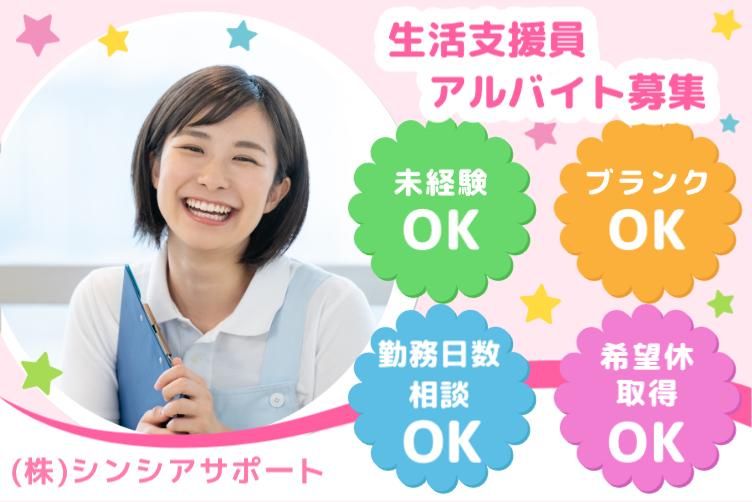求めている人材 ・未経験者大歓迎 ・無資格OK <活かせる経験> ・普通自動車免許あれば尚可 ・障がい者支援経験があれば尚可 - *フリーター活躍中 *主婦(夫)活躍中 - こんな方にもぜひ ・経験を活かしてスキルアップを目指したい方 ・安定したお仕事をお探しの方 ・お仕事復帰したい主婦(夫)さんやフリーターさん ・ハローワークで求職中の方も歓迎!