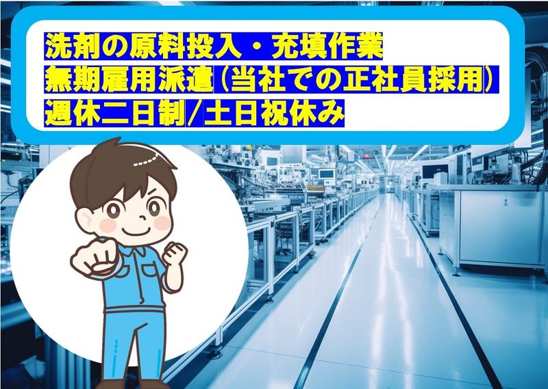 野田市尾崎/当社採用の正社員雇用/ 洗剤の製造・充填/ 男性活躍中/土日祝休み
