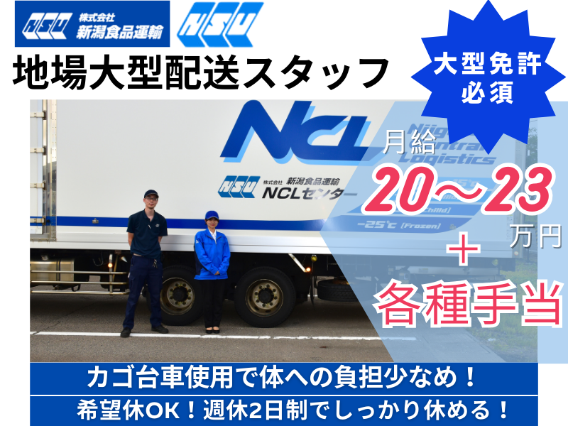 【正社員×大型ドライバー】センター便でラクラク配送◎新潟県内のみ/希望休OK!