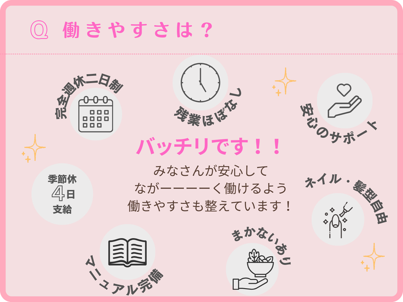 安定も、やりがいも✨残業ほぼなし|完休二日✨まかないアリ!