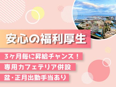 【保険制度】 雇用保険、労災保険、健康保険、厚生年金 待遇・福利厚生 【福利厚生】 ◆社員登用制度あり ◆服装・髪色自由 ◆交通費全額支給 ◆能力により昇給あり(3ヶ月毎に評価有) ◆正月出勤手当あり ◆社会保険完備 ◆従業員専用カフェテリア併設