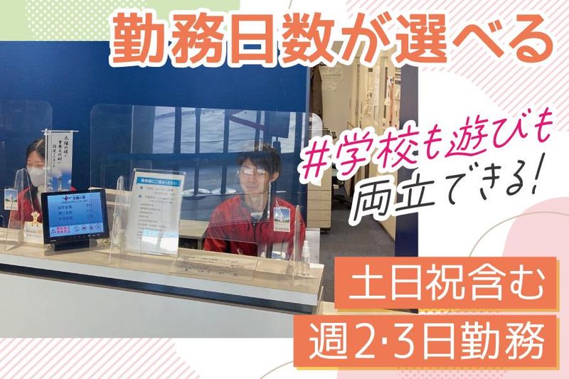 固定時間制 勤務時間詳細 9:30~17:30 ●土日祝を含む週2~3日勤務 ※平日+土曜or日曜の週2日勤務も可 ※土日のみの勤務もOKです♪ ◆基本は上記時間帯での勤務ですが、 「この日は学校の都合で早めに帰りたい」 などイレギュラーにも柔軟に対応◎ お気軽にご相談ください♪ ※土日祝を含む週4・5日の勤務(社会保険加入)も可能です。 ご相談ください。 契約更新期間:1年ごとに双方合意のうえで更新