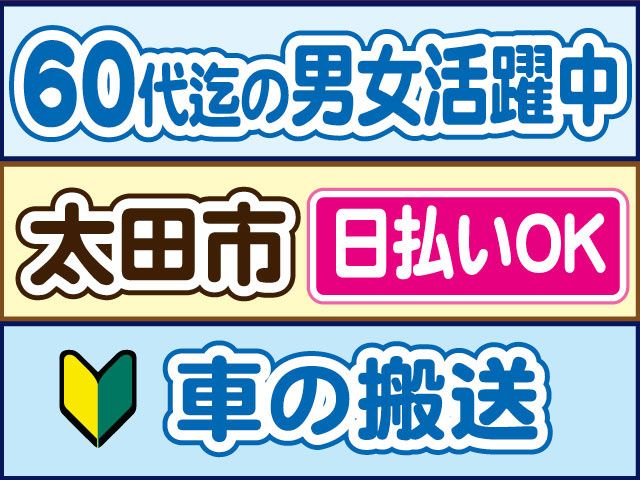 最寄駅 東武伊勢崎線 太田駅 車で10分 最寄駅備考 ・マイカー通勤もOK(駐車場無料)/交通費支給