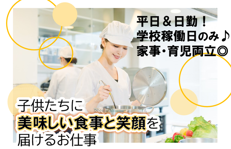 仕事内容 __________________  ̄ ̄ ̄ ̄ ̄ ̄ ̄ ̄ ̄ ̄ ̄ ̄ ̄ ̄ ̄ ̄ ̄ ̄ ✨✨子供たちの成長に関われる!✨✨ 「食」を通じてみんなを笑顔に♪ __________________  ̄ ̄ V ̄ ̄ ̄ ̄ ̄ ̄ ̄ ̄ ̄ ̄ ̄ ̄ ̄ ̄ ̄ ●30代・40代・50代 主婦(主夫)の方が多数活躍中! ●仕事は平日&日中のみ! 学校に合わせた勤務なので、 土日祝休みの他、GWや春夏冬 休みなどの大型連休あるため、 子育て中の方やプライベートを 充実させたい方にも働きやすい と喜ばれています。 ●未経験スタートの方が殆どなので 経験がなくてもご安心下さい。 <主な仕事内容>  ̄ ̄ ̄ ̄ ̄ ̄ ̄ ̄ ̄ ̄ ̄ ̄ ̄ ̄ ̄ ̄ ̄ ̄ ̄ 主に野菜の下処理や調理補助 片付け、洗浄などお願いします。 ✔タマネギやニンジン等、野菜の洗浄とカット ✔食缶の準備や配缶の補助、配膳 ✔食器や食缶の洗浄、清掃などの後片付け 給食室での準備・調理補助・清掃等を お任せします! 子供たちに ” 安心安全で美味しい食事 ” を届ける 素敵なお仕事です! 「美味しかった」「いつもありがとう」と 子供たちから嬉しい言葉をもらえることや 「食」を通じて、子供たちの成長や 食・素材への興味に関われることが 私たちのやりがいに繋がっています♪  ̄ ̄ ̄ ̄ ̄ ̄ ̄ ̄ ̄ ̄ ̄ ̄ ̄ ̄ ̄ ̄ ̄ ̄ ̄ 『 当社のオススメPOINT5選 』 ⭐未経験からのスタートがほとんど! 研修があるので安心して始められます!  ̄ ̄ ̄ ̄ ̄ ̄ ̄ ̄ ̄ ̄ ̄ ̄ ̄ ̄ ̄ ̄ ̄ ̄ ̄ ⭐平日&日中のみ勤務! 土日祝,春夏冬休みが嬉しい♪  ̄ ̄ ̄ ̄ ̄ ̄ ̄ ̄ ̄ ̄ ̄ ̄ ̄ ̄ ̄ ̄ ̄ ̄ ̄ ⭐調理師免許資格取得支援制度あり! 資格取得も支援します★  ̄ ̄ ̄ ̄ ̄ ̄ ̄ ̄ ̄ ̄ ̄ ̄ ̄ ̄ ̄ ̄ ̄ ̄ ̄ ⭐子供たちの成長に携われるお仕事! 子供たちの成長がやりがいです♪  ̄ ̄ ̄ ̄ ̄ ̄ ̄ ̄ ̄ ̄ ̄ ̄ ̄ ̄ ̄ ̄ ̄ ̄ ̄ ⭐学校の稼働日と同じだから 春季・夏季・冬期等の長期休暇あり! また、働きやすい時間帯なので、 小さなお子様がいる方にも好評です。  ̄ ̄ ̄ ̄ ̄ ̄ ̄ ̄ ̄ ̄ ̄ ̄ ̄ ̄ ̄ ̄ ̄ ̄ ̄ 午前からお昼過ぎまでの勤務なので 午後の時間は自由なんです! 家庭の時間・自分の時間に使えます! 家事・育児をしながら働く主婦さんや フリーターさん、ブランクがある方も みんな楽しく働いています♪ お子さんと同じ長期休暇があるから 家族の時間がとりやすいのも このお仕事のメリットです★ ★安定基盤と働きやすい環境! 主婦(主夫)・シニア層の方と、 幅広い年齢層の方が活躍中! =================== 【 株式会社東洋食品 】 東洋食品は学校給食のパイオニア企業です! ◎自校調理方式251校以上 ◎センター方式278箇所以上 北海道から九州まで 全国3870校の子どもたちに 1日あたり「139万食以上」の学校給食を 提供している会社です! 。・* 食を通じて子供たちの成長を 支えるお仕事一緒に始めませんか? ・。* ===================