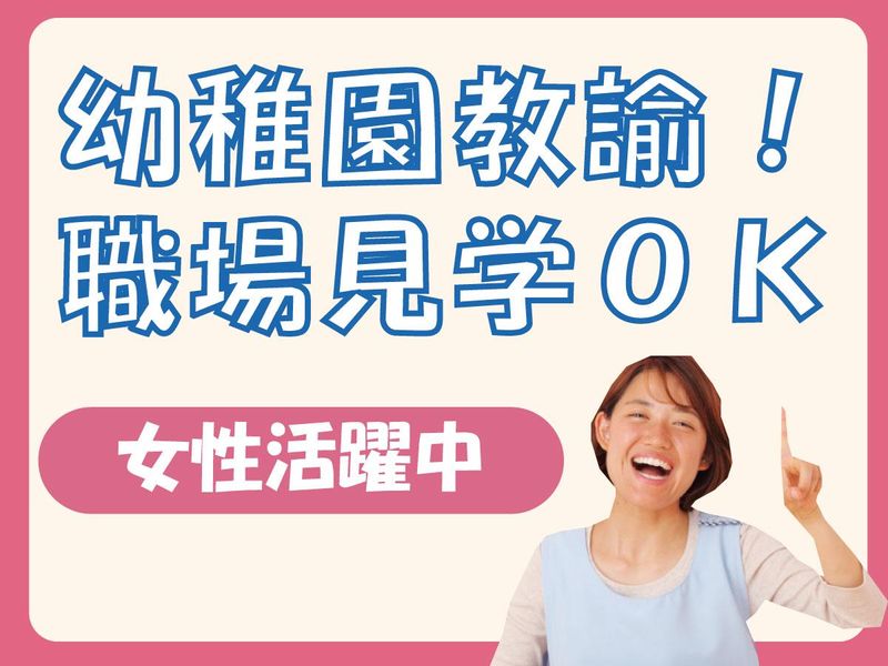 求めている人材 【必須】 幼稚園教諭資格をお持ちの方 - 未経験OK! ブランクある方や経験が浅い方も歓迎します。 - 資格をお持ちの方であれば初心者も歓迎! 子ども好きな方、仕事復帰をお考えの方にピッタリ◎