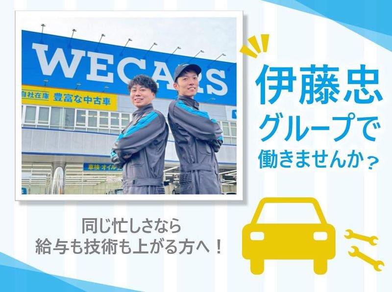 仕事内容 □■この求人のPOINT■□ 伊藤忠グループ/全国約250店舗展開 ◎国産~輸入車まで幅広い車種を担当 ◎車両状態が多様で、 判断力・応用力が身につく ◎スキル・資格に応じて昇給・昇格可能 ◎入社1~2ヶ月後のスキル判定で給与決定 ◎繁閑差のある働き方 ◎国家資格(3級・2級)取得支援あり □■WECARSについて■□ 2024年、伊藤忠グループのもと発足。 全国約250店舗を展開する整備・販売企業。 安定基盤のもと、評価制度を明確化し 整備士が長く活躍できる環境づくりを 進めています。 □■業務内容■□ 国産車・輸入車の点検・車検整備 オイル・タイヤ交換などの軽整備 故障診断・重整備にも段階的に挑戦可 車種や状態が多様なため、 スピード重視のルーティン作業だけでなく 判断や応用が求められる環境です。 □■働き方■□ 中古車業界には、繁忙期と落ち着く時期が あります。 時間に余裕がある時期は、 eラーニング受講や整備資格取得準備など、 スキル向上の時間を確保できます。 講習費用は会社が補助し、 受講時間は勤務時間として扱います。 多様なディーラー出身者が在籍しているため 日々の業務を通じて幅広い知識や技術を 吸収できる環境です。 □■評価制度■□ 技術・接客・コンプライアンス・チーム力の 4軸評価。 資格取得や対応業務の幅に応じて昇給。 「何をできれば上がるのか」が明確です。 例えば、自動車検査員資格を取得した場合、 月給が10万円アップします。※規定あり □■設備環境■□ ◎四輪アライメント測定器 ◎リフト平均8~12基 ◎1人1レーン制 ◎明るく開放的な整備スペース 効率と安全性を両立した設備環境で、 整備に集中できます。 □■将来のキャリア■□ 一般整備士 → チーフ → 工場長 → ブロック長/本社部門 全国展開企業だからこそ、 ポストの選択肢があります。