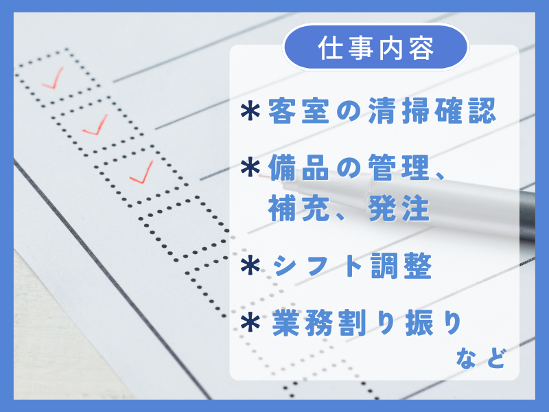 客室清掃スタッフの現場統括(ホテル清掃のリーダー)