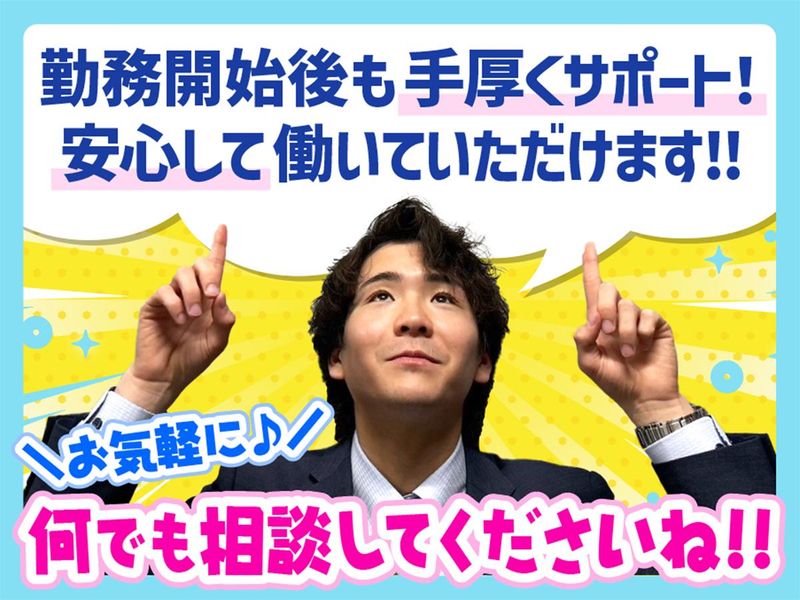 選考プロセス まずはお気軽にご応募を! お問い合わせだけでもOK 応募は「1分」で完了! <電話でのお問い合わせ> TEL050-5385-5176 「求人を見た」とお問い合わせください。 ご質問などもお気軽にお電話下さい <応募の流れ> 応募後に当社24時間以内に担当からお電話にてご連絡 面接の日程を決めます♪ ↓ 面接1回予定 ↓ 採用! ※早ければ当日中にご連絡いたします。 【ハローワーク】で求職中の方もぜひ!