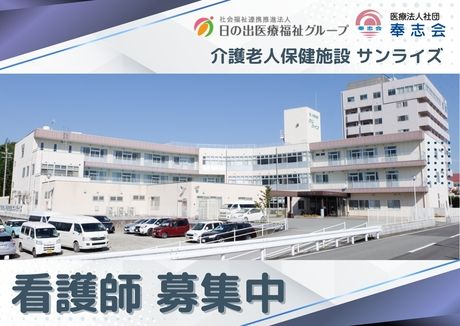 仕事内容 「環境を変えて新しい場所でチャレンジしたい!」 「収入アップで生活を充実させたい!」 まずはあなたのお悩みをお気軽にご相談ください! ご希望を踏まえて、弊社担当があなたの転職を支えます! ■入社日の相談ok!春からのスタートもokです■ ■すぐに勤務をしたい方は、すぐに紹介も可能■ 【仕事内容】 【稲美町/看護師】未経験OK!マイカー通勤可能!多様な福利厚生で生活をサポートします! 介護老人保健施設にて看護師を募集します。 【業務内容】 ◆健康管理 ◆体温・血圧の測定 ◆採血・点滴・投薬 ◆薬の管理 ◆医療的ケアの実施 ◆医師への報告 ◆多職種との連携 など 日々の見守りや身体的サポートをご担当いただきます。 ◎子育て支援の充実! ◎託児所や時短勤務制度など、働きやすいシステムを多数ご用意しております! 【こちらの求人はご紹介求人です】 有料職業紹介事業許可番号:28-ユ-300917 【介護老人保健施設 サンライズ】 当施設は、加古郡稲美町にある介護老人保健施設です。全国でも数ヶ所の「超強化型在宅復帰・在宅療養支援施設」に認定されております。 医師と理学療法士が考案した「次世代型デイケアプログラム」により、家における生活力向上・回復をサポートいたします。 これからも心身の自立と家庭への復帰を目指し、ご利用者様の自立支援を図ります。 【日の出医療福祉グループとは】 当グループは、兵庫県の加古郡稲美町を拠点に「社会福祉法人 日の出福祉会」「医療法人社団奉志会」「社会福祉法人 博愛福祉会」という3つの法人が集まって生まれた共同事業体です。 医療・介護・保育サービスを提供することにより、地域社会に貢献したいと考えております。 《お客様のよろこび、働く人のよろこび、地域のよろこび。》の理念のもと、今後も行動してまいります。 【ブランクがあります。正社員でも大丈夫ですか?】 →問題ありません。入職時は簡単な業務からスタート。 業務に慣れるまで先輩がフォローします。 ブランク明けの方の入社実績も多数あります。 主婦(主夫)さん、ブランク復帰の方、第二新卒など 年齢などに制限はございません!あくまで人柄重視の採用基準です。 誠実で思いやりを持って働いて下さる方であれば大歓迎! スタッフインタビュー「以前はどんなお仕事を?」 ・「以前はパート、アルバイトでクリニックで働いていた」 ・「夜勤無しの病棟看護を行なっていた」 ・「介護施設や医療施設を転々とし、短期間しか働いた事が無かった」と経験も様々! ※他にも「クリニックでしか働いた事が無い」「福祉施設しか・・」「訪問看護しか・・」「派遣しか・・」等々。 経験がある方も少ない方も安心してはじめて頂ける環境をご用意しておりますのでご安心ください。20代、30代、40代、50代活躍中!