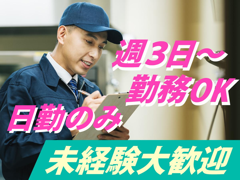 仕事内容 \未経験OK・資格不問/ ・施設管理/設備管理スタッフ募集 ・研究施設内で車両管理や清掃など 軽作業中心 ・日勤のみで生活リズム安定 ・週2・3日~勤務OK! ・無理のないペースで長く働けます 具体的には ╰━ V━━━━━╯ ◆施設内車両の管理 ◆車両や設備の点検 ◆施設内の清掃作業 ◆ETCなど備品の管理 など、施設管理・メンテナンス業務を お願いします。 キレイな施設内でのお仕事です ╰━ V━━━━━━━━━━━━╯ ◆管理する車両は20~25台程度です。 ◆施設内の移動は自転車を使用するため、 重い物を持つ作業はほとんどありません。 \\難しい作業はありません// 設備管理やビルメンテナンスの経験がない方 も、一つひとつ丁寧にお教えしますので 未経験の方も安心してスタートできます。 ※日勤のみ&シフト相談可能なため、 家庭やプライベートと両立しながら 働きやすい環境です。 ※「体に負担の少ない仕事がいい」 「長く安定して働きたい」 そんな方におすすめの 施設管理・軽作業のお仕事です。
