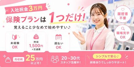 【入社祝金3万円】保険プランは1つだけ|未経験者歓迎!