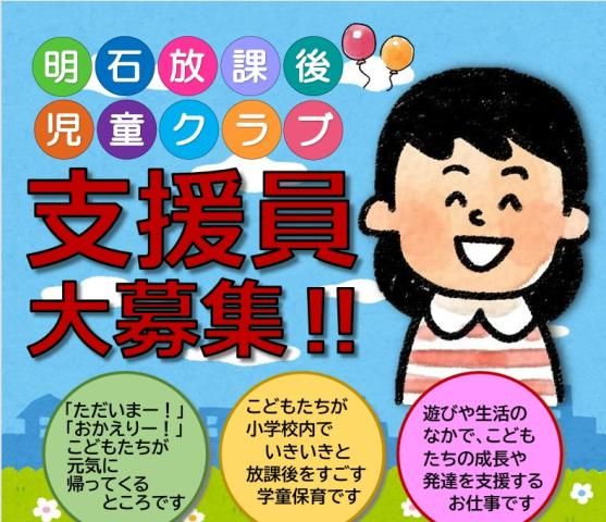時給が上がります!【明石市内】\放課後児童クラブの補助支援員/未経験&無資格OK!時間・日数応相談! 《公益財団法人こども財団》は、 明石市から放課後児童クラブの運営を受託し、 子ども達の健やかな成長をサポートしています。(学童保育) 今回は明石市内に28か所ある児童クラブで 【補助支援員】を新たに大募集! 無資格&未経験スタートも大歓迎! 「無資格だけど子どもに関わる仕事がしたい」 「未経験から新しい仕事に挑戦したい」 そんな方はこの機会に始めてみませんか? 就労前に研修を行いますので、 仕事の流れや子どもとの接し方など、 細かなことを学んだ上で働けますよ。 勤務時間は各クラブによって異なりますが、 平日は午後以降、土曜日や長期休みは 日中のフルタイムとなります。 具体的な日数や時間は遠慮なくご相談ください!