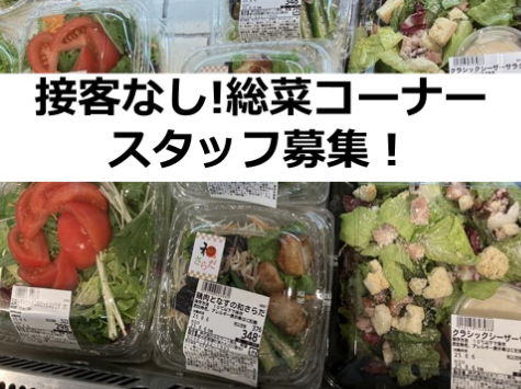 仕事内容 計量の必要なし! 冷凍キットの「湯煎」「炒める」「揚げる」 「焼く」などの作業をお願いします ・マニュアルに沿った簡単業務 ・扶養内勤務OK ・週3~、1日3.5時間~OK ・シフト自由! ・黙々と作業するのが好きな方オススメ! ・未経験からスタートしたい方も大歓迎 ・髪色髪型自由 惣菜・弁当コーナーでの調理業務を お任せします! 調味料などが計量された冷凍キットを 開封し「湯煎」「炒める」「揚げる」 「焼く」などの作業を分担しておこない、 お惣菜・お弁当を作っていきます。 その日ごとにお願いする作業は 変わりますが複雑な工程がないのが 魅力のお仕事です! お寿司などのお惣菜もありますが、 シャリ(ご飯)マシーンがありますので、 並べる・乗せる作業が中心です。 数名の先輩スタッフと共に分担作業が 多いですし、作る順序などのマニュアルも 充実しているので調理未経験の方でも ご活躍いただけます。
