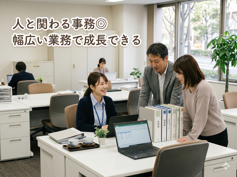 求める人材: 3号のイ:35歳(長期キャリア形成のため) ※経験不問の募集です。 <以下のような方も歓迎しています> ・総務の実務経験を働きながら身につけたい方 ・ひとつひとつの業務を正確に進める姿勢で臨める方 ・わからないことは自分から周囲に質問できる方 ・社内外の人と連携・協力しながら仕事を進められる方