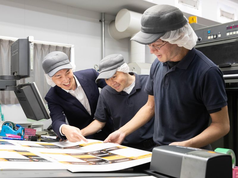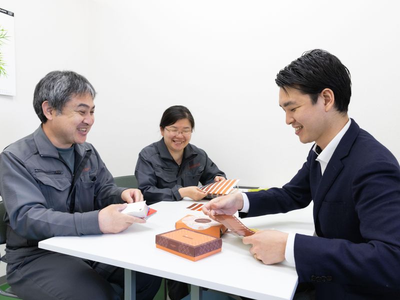 仕事内容 商品パッケージ(紙箱)の企画営業職 企画、提案、納品手配などの一連の業務を担当します。アイデアが活かせるクリエイティブな営業職です。 <取り扱う商品・サービス> お菓子、おみやげ品、工業製品、扱うジャンルは様々です。自ら手掛けた商品が日本全国の店頭に並びます。 <商談から納品までの流れ> ヒアリング 社内検討、サンプル作成 企画提案 仕様決定、見積り作成、生産量や納期の設定 設計、デザインを随時ブラッシュアップ 製造、納品 魅力的なパッケージをご提案するために、まずはお客様へのヒアリングを十分に行います。ヒアリングを通して、商品のターゲット顧客、販売方法、予算などを整理します。ヒアリング内容を元に、紙パッケージの形状、素材、デザイン等の方向性を絞り込んでいきます。企画の立案は、製造担当者や企画担当者(設計・デザイン)など、他部署とも連携して行います。また、商談には必要に応じて他部署のスタッフも同席し、営業活動をサポートします。 ひとつの案件が形になるまでの期間は、およそ2ヶ月程度です。早いと1ヶ月、長いもので半年ほどかかるケースもあります。 <日本紙工の強み> ●あらゆる業界やジャンルを幅広く手掛けた実績あり。知識やノウハウもあるためお客様から頼られています。 ●企画からデザイン、印刷、製造まで一貫して行えるからお客様の手間も少なめ。 ●一人一人に裁量があり、小回りの効く対応が可能。お客様の要望にもすぐに応えられる体制です。 <営業エリア> 東海3県が中心です。一部、北陸、静岡、群馬と幅広い地域にお客様がいます。担当するお取引先様によって月1~2回程度、日帰り出張があります。 <入社後の流れ> ・1ヶ月目 CADでの設計やデザイン業務、製造を体験しながら、実際にパッケージができるまでの基本的な流れを学びます。 ・2ヶ月目 先輩の営業担当者の打ち合わせに同行し、商談の雰囲気をつかみます。 ・3ヶ月目 既存のお客様を少しずつ引き継いていきます。まずは1件納品を目指しましょう。 ・半年~1年後 取引規模の大きなお客様を徐々に担当します。独り立ちした後もフォロー体制は万全。月1回の会議でアドバイスや情報共有を行いますし、必要があれば同行もします。気軽に相談してください。 <写真で職場見学> ・写真1枚目 食品や生活用品など、幅広いジャンルの商品パッケージを手がけています。 ・写真2枚目 企画スタッフは紙や色のプロ。商談にも同席し力を貸してくれる頼もしい存在です。 ・写真3枚目 印刷現場のスタッフからも知恵を借り、協力しながら進めています。 ・写真4枚目 先輩や上司が打合せに同行します。学びがたくさんありますので、一つ一つ吸収して成長してください。 ・写真5枚目 男性の育休取得にも積極的。彼も周囲の協力を得ながら育休を取得しました。