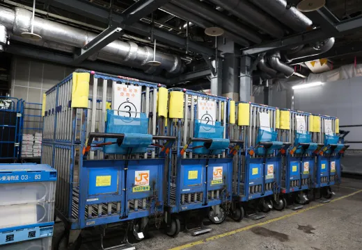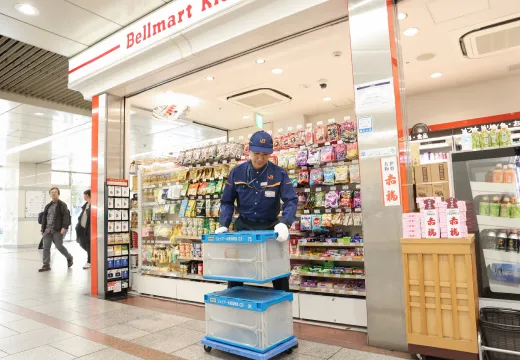 JR名古屋駅構内での台車を使ったお弁当の早朝配送スタッフ