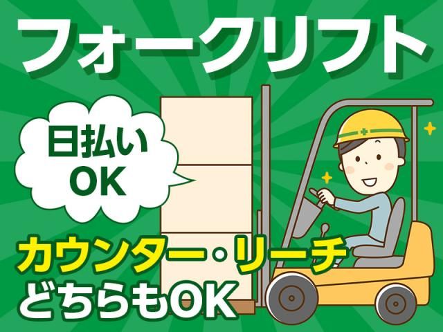 フォークリフト業務★時給1,500円~★給与即払いOK★長期安定★日勤ワーク★土日休み★