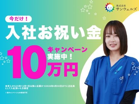 仕事内容 \今 だ け ! 期間限定で2つのキャンペーンを実施中! / ●入社お祝い金10万円支給キャンペーン 本求人から 25年12月1日以降に応募かつ2026年4月30日までに 正社員として入社頂いた方限定で支給いたします。 ※他キャンペーンとの併用不可 ●引越し支援金30万円支給キャンペーン 「入社時に引越しを伴う方」へ支給いたします。(諸条件あり) 転職時に引越しを予定されている方はこの機会に是非ご検討ください! 詳細は下部の待遇・福利厚生にてご確認ください! ー ・*:.。 。.:*・゚*.。.:*・゚*.。.:*・゚ *.。.:*・゚*.。.:*・゚ 1日でも長く「自分らしい生き方」を目指して、 緩和ケア専門、難病専門のフロアをつくりました ・*:.。 。.:*・゚*.。.:*・゚*.。.:*・゚ *.。.:*・゚*.。.:*・゚ 太陽のプリズム博労は、有料老人ホームの「医療特化型住宅」です。 24時間体制で看護師や介護士が医師と連携し、療養病棟や他の高齢者施設では実現できないQOL(生活の質)にこだわっております。 また、在宅医との連携により的確な医療処置を提供することができます。 職種間の壁を越え、スタッフ全員でご利用者様のことを一番に考えサービスを提供していくことを大事にしております。 °*★ 施設見学受付中 ★*° ⌒⌒⌒⌒⌒⌒⌒⌒⌒⌒⌒⌒⌒ 「施設の雰囲気が知りたい!」 「実際の業務の内容を見てみたい」 という方も、先ずは応募ボタンをお願いします♪ その後、日程調整の件で担当者がお電話しますので、見学希望であることをお伝えください!! ┏━━━━━━━━━━━━━┓ サンウェルズが選ばれる理由 ┗━━━━━━━━━━━━━┛ ●〇高水準の年収3,872,000円~〇●  ̄ ̄ ̄ ̄ ̄ ̄ ̄ ̄ ̄ ̄ ̄ ̄ ̄ ̄ ̄ ̄ サンウェルズは日本一の給与水準を目指しています。 毎年賞与・手当増額など、様々な形でより良い待遇に向けて取り組みを続けています。 ※年収例は介護福祉士、夜勤月5回勤務の場合 ●〇休みやすくて働きやすい〇●  ̄ ̄ ̄ ̄ ̄ ̄ ̄ ̄ ̄ ̄ ̄ ̄ ̄ ̄ ̄ ◇残業少なめ!月平均4.6h程度(2023年度実績) ◇固定残業代なし!残業代は別途1分単位で支給 ◇年間休日120日&3連休以上取得可能! プライベートな時間を大切に、長く安心して働き続けられる体制が整っています! ●〇フラットな職場で風通し抜群〇●  ̄ ̄ ̄ ̄ ̄ ̄ ̄ ̄ ̄ ̄ ̄ ̄ ̄ ̄ ̄ ̄ ̄ 介護、看護、リハビリスタッフや役職者が、それぞれの専門性を発揮しながら一つのチームとして業務に取り組んでいます。 それぞれの視点で気づいたことを共有し合ったり、話し合ったりすることも多く、職種や役職に関わらずコミュニケーションが取りやすい雰囲気です。 スタッフ間の連携を大切にすることで、発言もしやすく、困りごとや頼みごとの相談もしやすい環境です。 ■□仕事内容□■ ケアプランに沿った個別ケアや食事、入浴、排泄介助の実施、褥瘡の予防や離床目的のエクササイズ等が主な業務となります。 介護職の業務は主に「訪問介護業務」「施設介護業務」「看護補助業務」になります。 ◆訪問介護業務 入居者様の居室へ訪問する施設内訪問介護にて個別ケアを実施します。 ※入居者様のご自宅への訪問はございません。 ◆施設介護業務 入居者様からのナースコールがあった際の訪問対応や、食事の配膳、食後の服薬、またリハビリ職員と協力して集団レクリエーションの準備や入居者様の誘導を行います。 ◆看護補助業務 看護師と一緒に施設内の居室を訪問します。 居室訪問時の必要備品(おむつ、ガーゼ等)の準備や、医療処置のサポート、その他、着替えやおむつ交換、車いすへの移乗のサポート等が主な業務です。 【アピールポイント】 *<サンウェルズのおすすめポイント>* 〇充実した福利厚生制度 〇各種手当の充実/別途支給 〇専門性の高い介護/福祉サービスの追求 〇充実した研修制度を整備 〇新規出店が多く、キャリアアップのチャンスがある 〇ワークライフバランスの実現 〇ライフイベントに合わせた休暇制度